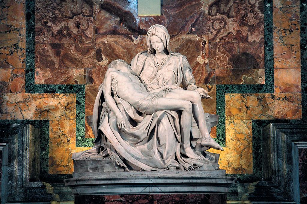 Микеланджело Буонарроти, «Пьета», мрамор, высота 174, 1499. Ватикан, собор святого Петра