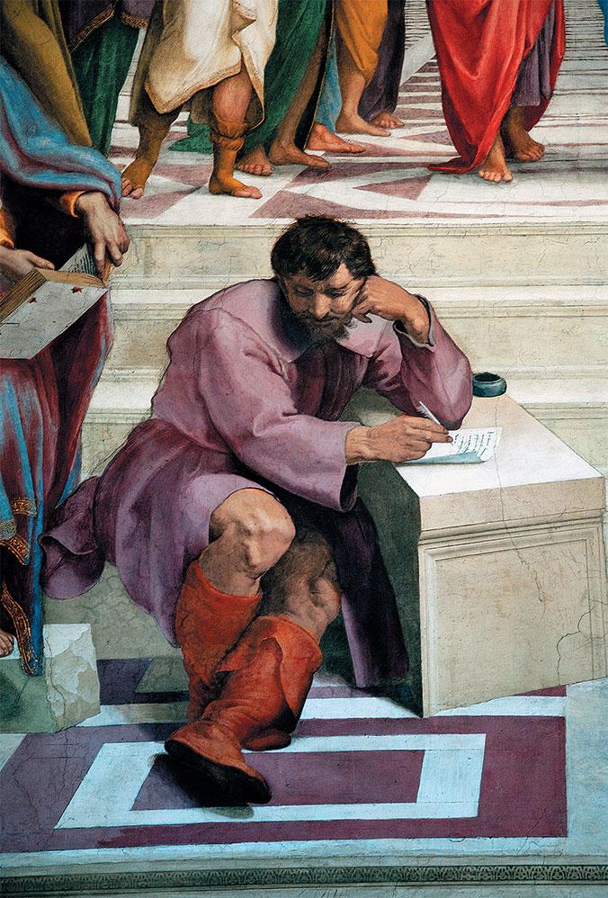 Рафаэль Санти, «Афинская школа», фреска, ширина у основания 770, 1509, Ватикан, Папский дворец. Фрагмент (фигура Гераклита)