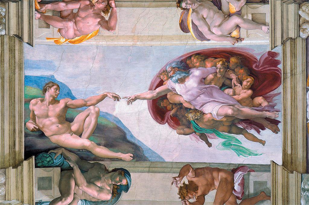 Микеланджело Буонарроти, «Сотворение Адама», фреска, 1508–1512. Ватикан, Сикстинская капелла.