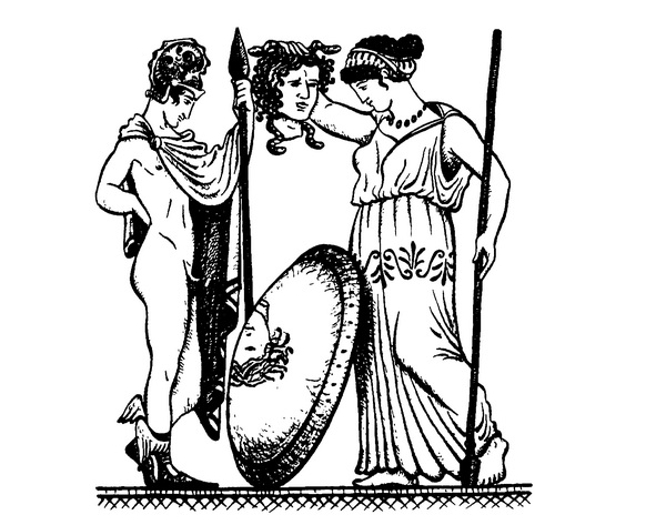 Засмутився Персей, але відступати не було куди. Отож він звернувся по допомогу до мудрої Атени та спритного Гермеса. Атена і Гермес довго радились і нарешті спорядили Персея в дорогу: дали йому з собою шолом – невидимку володаря підземного царства Аїда, крилаті сандалії вісника богів Гермеса, гострий меч у формі серпа та чарівну торбу. Останньої миті Атена віддала Персеєві ще й свій гладенький щит, у якому все можна було бачити, як у дзеркалі.
