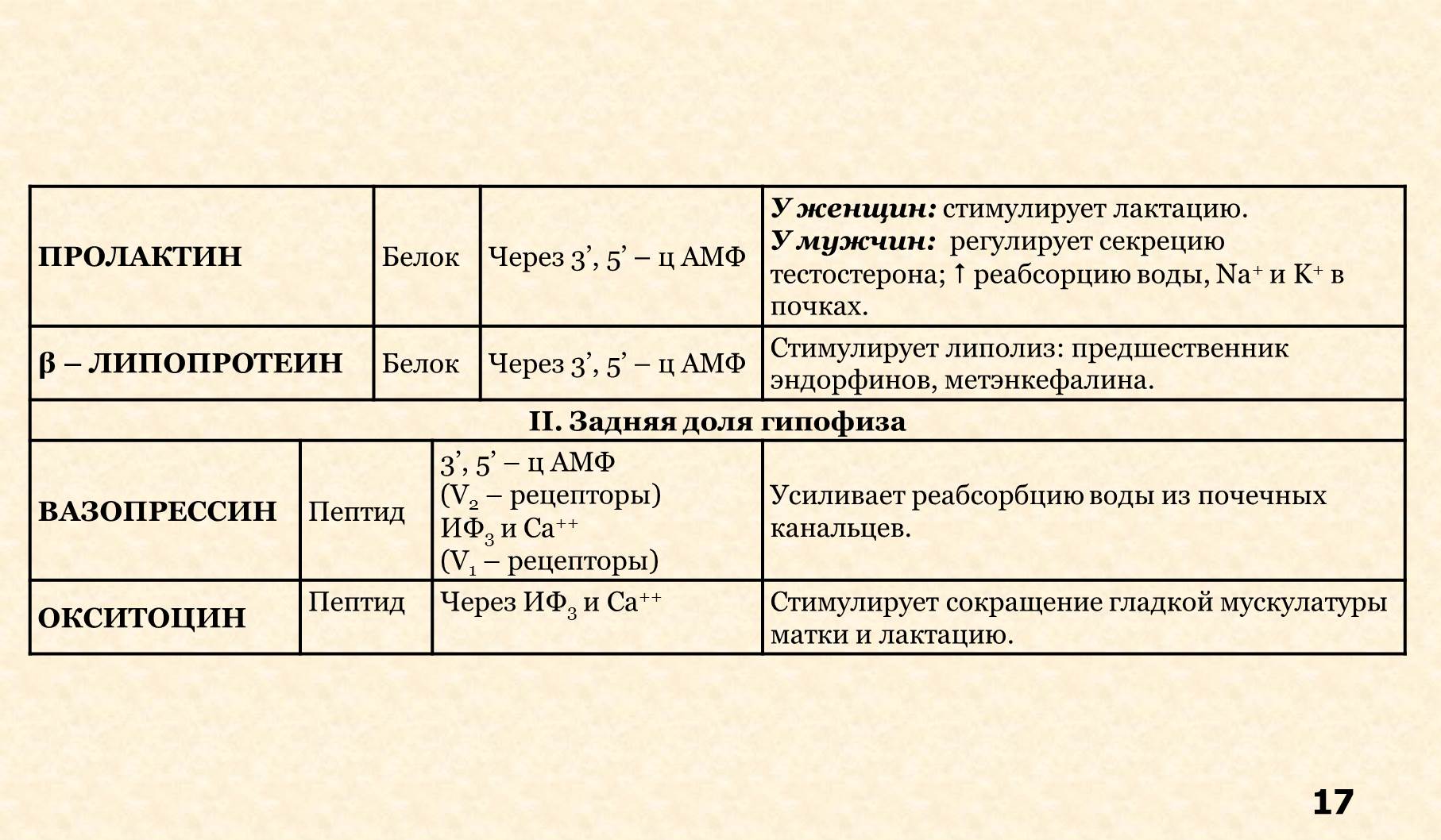 Соматотропин – белок состоящий из 191 АМК и имеющих 2 дисульфидные связи. Свои сигналы СТГ реализует через ИФР-I, или соматомедин С или через ИФР-II (соматомедин-2), которые действуют подобно рецептору инсулина через активацию тирозинкиназы. Биологический эффект СТГ обладает анаболическим действием, усиливает синтез белка в тканях – мишенях за счёт усиления транспорта аминокислот; увеличение РНК и ДНК.