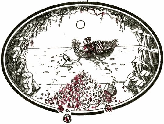 Хотя на лодке не было ни парусов, ни весел, она летела вперед словно по волшебству, и очень скоро они приплыли к огромной пещере. Русалка бросила серебряный якорь и предложила Эндрью сойти с лодки и спуститься в мрачную пещеру.