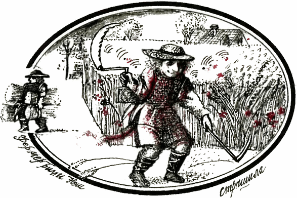 Наконец страшила не выдержал, выронил серп и с громким стоном повалился на землю.