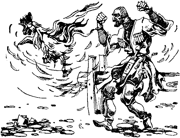 Это пел Гирпи, и стоял он открыто на высоком камне у входа в пещеру. Князь выхватил пистолет, пришпорил коня и поскакал к нему. А Гирпи набросил на голову свою дырявую черкеску, замахал рукавами да как гикнул: