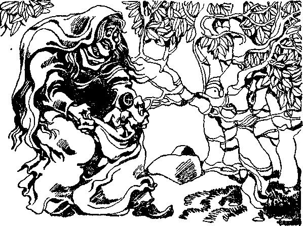 – Держите! Хватайте! Не пускайте! – кричала она слугам, но те только делали вид, что ловят юношу, а сами и не думали.