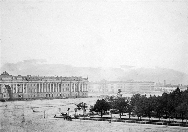 В 1711 году Петр I учреждает высший орган государственной власти – Правительствующий Сенат, а через десять лет, в 1721 году, вместо упраздненного патриаршества – высший орган управления Русской православной церковью – Святейший Правительствующий Синод. Первоначально здание Сената находилось на Троицкой площади. Затем Сенат разместился в здании Двенадцати коллегий на Васильевском острове, а в 1762 году ему предоставляется особняк канцлера А. П. Бестужева-Рюмина на углу Сенатской площади и Английской набережной. Синод же, который подчинялся непосредственно императору и состоял из двенадцати не освобожденных от основных должностей членов, в отличие от Сената, вообще не имел постоянного места для своих заседаний.