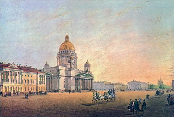 В 1809 году Александр I объявил конкурс на проектирование нового Исаакиевского собора, а 26 июня 1818 года произошла его торжественная закладка. Проект создал молодой французский архитектор Огюст Монферран, за два года до этого приехавший в Россию.