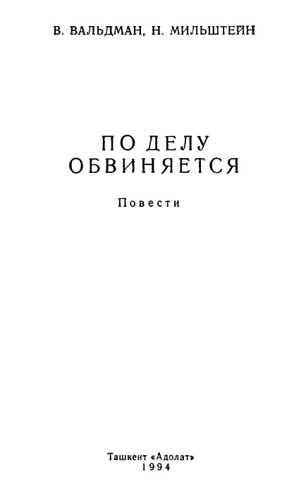 В. Вальдман, Н. Мильштейн