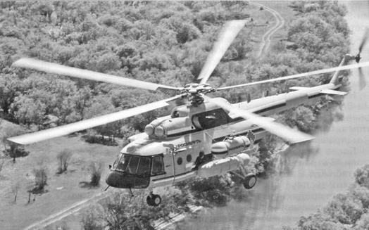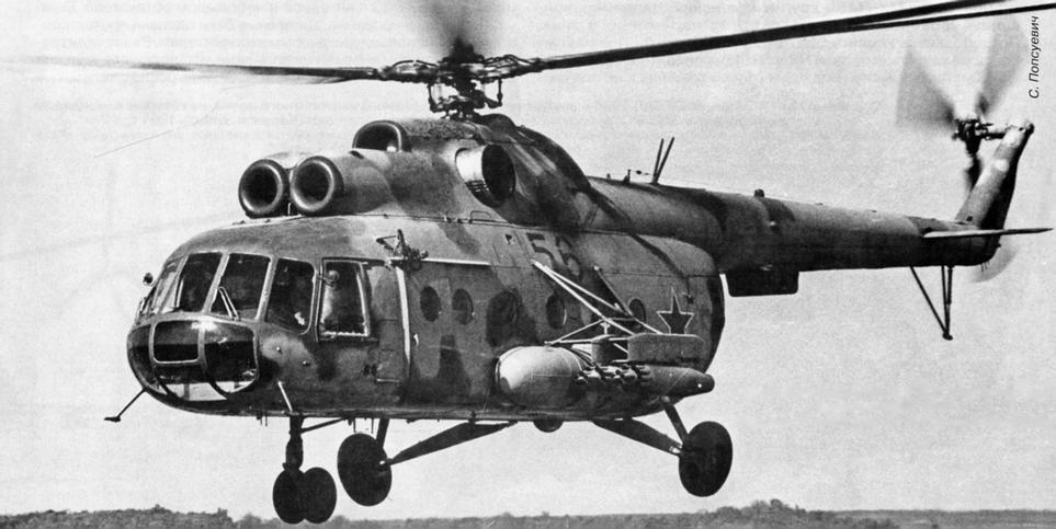 Ми-8 весьма быстро приобрел популярность как в СССР, так и за его пределами. Однако, когда машина стала эксплуатироваться в регионах с жарким климатом и на высокогорье, со всей очевидностью проявилась ее недостаточная энерговооруженность для таких условий. Все понимали, что необходим более мощный двигатель. Его проектирование коллектив Изотова начал еще в 1965 г., а через два года вышло постановление Совмина СССР о создании и модернизированного вертолета. Однако по ряду причин только в 1970-е годы началась непосредственная реализация идеи по пересадке «восьмерке» нового «сердца». К тому времени новый двигатель ТВЗ– 117 не только прошел испытания, но и устанавливался на серийные вертолеты-амфибии Ми-14 и боевые Ми-24 (см. «АиВ», 6’2003 и 3’96). Его массовый выпуск был налажен на Запорожском ПО «Моторостроитель» (ныне АО «Мотор Сич»).