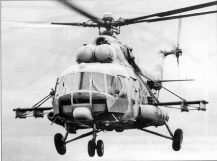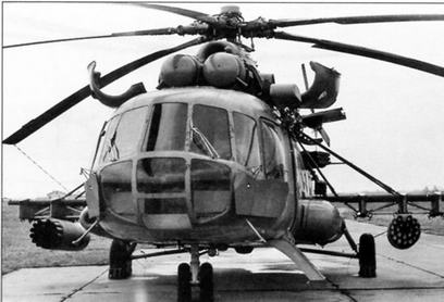 Опыт войны в Афганистане показал, что для более успешных действий в условиях жары и высокогорья «восьмерке» требуется еще более мощная силовая установка с повышенной высотностью. В 1986 г. такая машина, получившая обозначение Ми-8МТВ. поднялась в воздух. Она была оснащена двигателями ТВЗ-117ВМ мощностью 2000 л .с. Вертолет получил возможность летать на высотах до 6000 м, выполнять взлеты и посадки с площадок, расположенных на высоте до 4000 м. На борту установили более современное оборудование, включая аппаратуру дальней навигации. По требованию заказчика можно было установить метео-РЛС с антенной в небольшом обтекателе. Было улучшено бронирование, топливные баки сделали протезированными с пенополиуретановым заполнителем. Возле окон грузовой кабины установили шкворневые установки для ведения огня десантниками. Число блоков АСО-2В выросло с четырех до шести. Характерными особенностями новой версии вертолета стали хвостовой винт с лопастями большей площади со скошенными законцовками и увеличенный левый топливный бак. Со следующего года вертолет стали серийно выпускать в Казани, где его экспортный вариант получил обозначение Ми-17В. а гражданский Ми-8МТВ-1 (Ми-17-1 В).