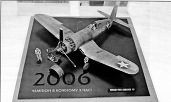 Более подробно остановимся на авиационной экспозиции, где было выставлено более 160 моделей, представленных в категориях А, В – юниоры, С, D и Е – мастера. И посетители, и судьи отметили очень высокий уровень работ, который заметно вырос по сравнению с предыдущими годами. На самом видном месте зала красовалась огромная в масштабе 1:72 модель американского эскортного авианосца USS Suwannee с группой самолетов на палубе. Традиционно большую часть авиационной экспозиции заняли самолеты Второй мировой войны. Лучшими из них стали диорама одессита Руслана Слюсаренко с истребителем F4U-1 (1:32), модели (1:48) киевлян Алексея Белова А6М5, а также Максима Гойна Fw 190A-8/R2 и Bf 109Е-4. За модель SBD-5 (1:48) Михаил Русинюк из Ковеля получил поощрительный приз от фирмы ITALERI. Также были отмечены призами отлично выполненные им А-1J и А-37А (1:48). Василий Кошевой из Киева награжден призами за четыре модели, включая BV 138 (1:72). Среди юниоров жюри отметило работы ребят из Броваров: Як-7А( 1:48) Алексея Шафрая, Р-51 (1:48) Владислава Нагорного и По-2 (1:72) Дмитрия Кондратюка. Поощрительным призом были отмечены работы нашего гостя из Вильнюса Ауктумаса Норейка: Global Flyer и Не 177А-5 (1:72).