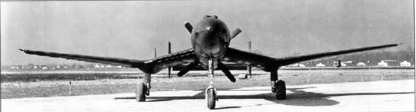 На этом фото и внизу на стр. 41 – опытный истребитель ХР-54 (per. № 11211) в одном из немногих своих испытательных полетов