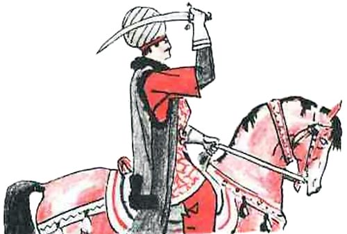 – Верно, он, – говорит старый Михайло, – конь его, и мечего золочёный блестит.
