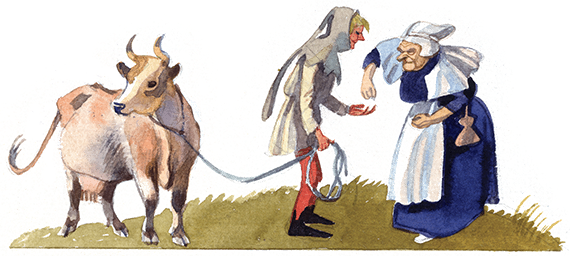 – Ты уже вернулся, Джек? Вижу, коровы нет, значит, продал её. Сколько тебе денег за неё дали?
