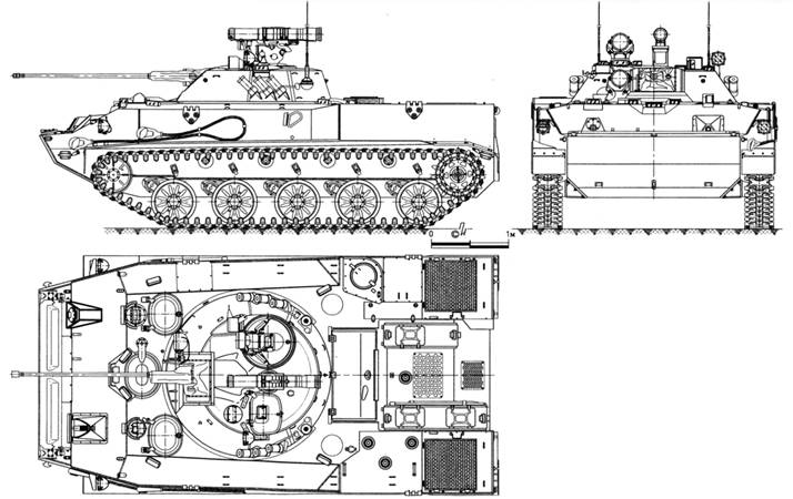 Характерно, что БТР-МД имеет ту же боевую массу, что и БМД-3 – 13,2 т. Новая база позволила увеличить грузоподъемность авиадесантируемого бронетранспортера почти в 1,5 раза по сравнению с БТР-Д и практически уравнять ее с более тяжелым плавающим БТР-50П (все эти машины выпускались на ВгТЗ).