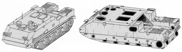 Бронетранспортер скомпонован по схеме с задним расположением МТО и передним – отделения управления. Среднее отделение корпуса может использоваться для размещения десанта, раненых на носилках, либо грузов снабжения. Отделение управления и среднее отделение находятся внутри высокого корпуса рубочного типа, занимающего около 2/3 общей длины машины.