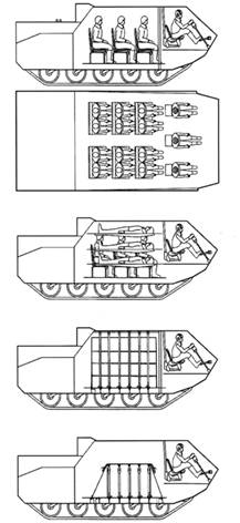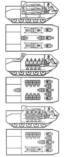 Варианты размещения людей и грузов в корпусе БТР-МД.