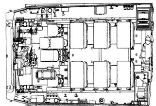 Отделение управления и среднее отделение БТР-МД. Вид в плане.