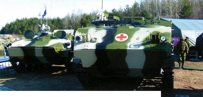 Также на шасси БТР-МД создана бронированная медицинская машина БММ-Д1 (ОКР «Травматизм») и БММ-Д2, а на удлиненном семикатковом шасси – перевязочная медицинская машина ВДВ БММ-ДЗ.