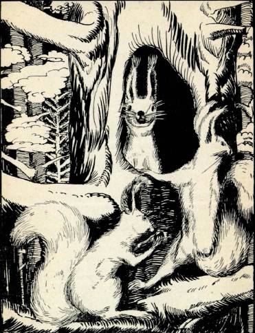 Жила-была в дупле дерева семья белок – папаша-белочка, мамаша-белочка, дочка да сын. Папаша-белочка за дровами ходил, мамаша-белочка желуди молола. Жили они хорошо. Домик у них был выстроен на славу– Раз утром папаша-белочка прибежал домой встревоженный. Он задыхался от усталости и волнения и отчаянно махал лапкой. – Прячьтесь, – крикнул он еще издали, – сюда идет охот– ник! Он нас всех перебьет.