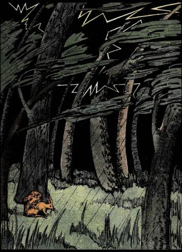 . – „Гляди, гляди!" сказал один из них: „вот и орехи! Да и белка где-нибудь тут же спряталась". С этими словами они начали раскапывать и растряхивать гнездо Бобочки. Один из них вместе с листьями > травой и шерстью схватил ее поперек. Она завизжала и от боли вонзила в его руки свои острые зубы и когти так, что кровь вдруг брызнула у него из многих мест. „Ах ты, проклятая!" закричал мужик и придавив ее к земле, схватил за шею так сильно, что Бобочка высунула язык.