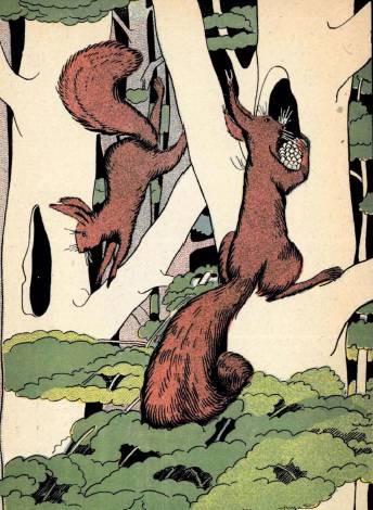 В большом лесу, в дуплах, жили по соседству две белки. Одна из них целый день собирала