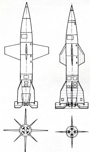 ЗУР «Вассерфаль»: первоначальный вариант (слева); окончательная конфигурация (справа)
