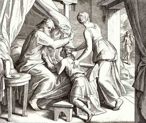 1 Когда Исаак состарился и притупилось зрение глаз его, он призвал старшего сына своего Исава и сказал ему: сын мой! Тот сказал ему: вот я.