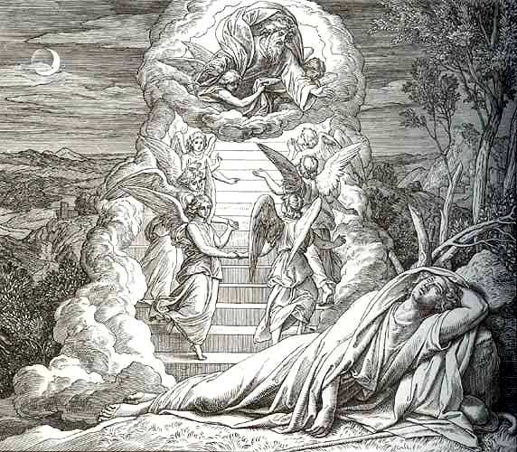 12 И увидел во сне: вот, лестница стоит на земле, а верх её касается неба; и вот, Ангелы Божии восходят и нисходят по ней.