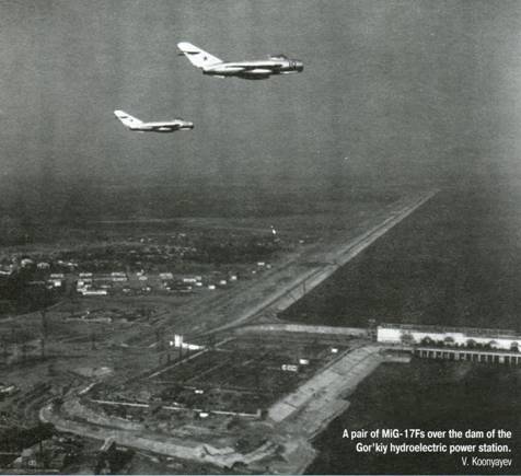 Пара МиГ-17Ф над плотиной Горьковской ГЭС. Фото В. Куняева