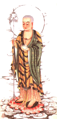 В иконографии махаяны бодхисаттва Кшитигарбха единственный из бодхисаттв, который изображается в виде буддийского монаха.