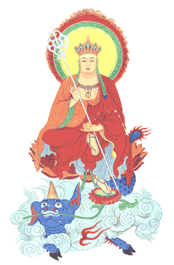 Бодхисаттва Манджушри легендарный сподвижник Будды Гаутамы, является «Хранителем Рая на Востоке», покровитель искусств и всех стремящихся к знаниям.