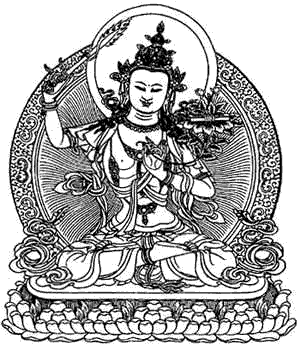 Манджушри или Сарвадхармапрапаньча (санскр. मञ्जुश्री, Mañjuśrĩ; тиб. Джампэл / Jampal – букв. «Красивое сияние», «святое великодушие»), – бодхисаттва семейства Падма (см. Будда Амитабха). Устраняет все разделения обликов, пребывает в самадхи «пустоты, отсутствия обликов и желаний». Пребывает во Вратах Освобождения. Открывает дхармакая таковости, которое всегда радостно и чисто. Бодхисаттва Манджушри олицетворяет высшую мудрость, разум и волю, персонифицирует всеведение и осуществляет полную просветлённость.