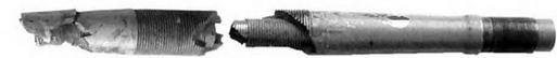 Результат взаимодеиствия БОПС ЗБМ42 «Манго» с кумулятивной защитои «Нож». Составной сердечник из вольфрамового сплава в стальном кожухе расколот надвое