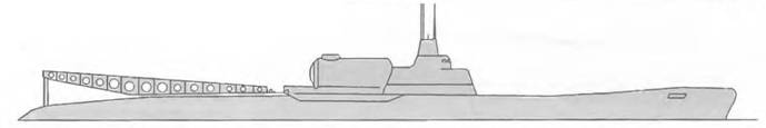 Более реалистичным и отвечающим возможностям судостроения тех лет стал разработанный спустя год тем же коллективом пр.624 – проект подводной лодки, рассчитанной на десяток самолетов– снарядов конструкции ОКБ-301 С А Лавочкина.