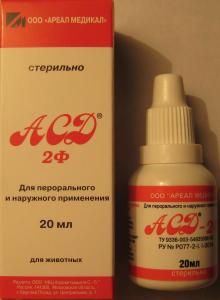 Антисептик стимулятор Дорогова (АСД) 2 фракция, 20 мл. Производитель: ООО «НВЦ Агроветзащита С.-П.» совместно с ООО «Ареал Медикал», г. Москва. 85.00 руб.