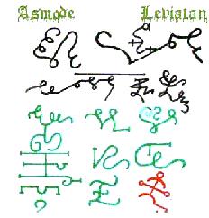 АСМОДЕЙ. ЛЕВИАФАН (ASMODEUS. LEVIATAN) Эти Духи далее обучат Вас Злобе Дьяволов. Не пользуйтесь сами услугами этих Злых Духов, которые являются обманщиками. Одно лишь Имя Бога даст вам возможность заставить их и всех прочих явиться вам. Их Знаки таковы:
