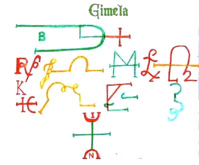 ГИМЕЛА (GIMELA) позволит вам узнать и созерцать форму Змия, который соблазнял Еву в Земном Раю; (он также) может предоставить вам некоторых из своих Духов, которые могут доставить вас из одного места в другое и могут даже обеспечить вам возможность путешествовать со скоростью ста лиг в час. Его Знак таков (см. рисунок).
