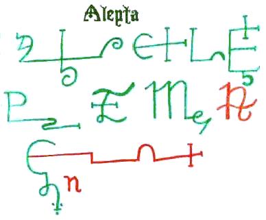 АЛЕПТА (ALEPTA) позволит вам увидеть, как Авраам вышел из Ура из среды халдеев, и из Харана. Он может дать вам большие богатства. Его Знак таков (см. рисунок).