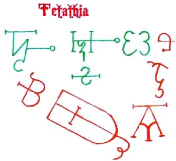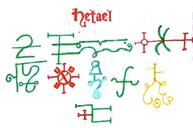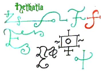 ХЕТАТИЯ (HETHATIA) позволит вам посмотреть, как Моисей увидел блага, которые он получил от Бога, когда он был в Пустыне Земли Мидян. Он может сделать много для тех, кто вызывает его, но это не должно происходить в пустынном месте. Его Знак таков (см. рисунок).