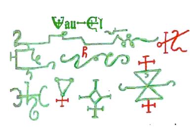 ВАУ-АЭЛЬ (VAU-AEL) – Дух, который заставляет явиться все виды радостных видений, подобно тем, которые являлись нашим Предкам в Ветхом Завете. Он будет служить вам искренне во всем, что вы пожелаете узнать. Его Знак таков (см. рисунок). Он имеет множество Духов под своим господством.