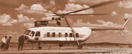 В 1957 году поднялся в небо вертолет– гигант Ми-6 с переделанным для вертолета самолетным турбинным двигателем конструкции Соловьева. Так было и при модернизации вертолета Ми-4: был переделан в вертолетный вариант выпущенный для самолетов турбовинтовой двигатель АИ-24 мощностью 1900 л.с. конструкции А.Г. Ивченко.