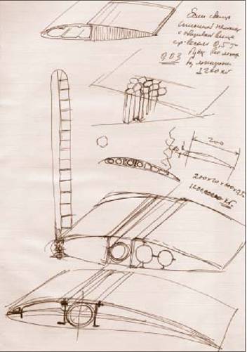 М.Л. Миль думал о проблеме уменьшения вибраций на Ми-8. На страничке из дневника (рис. 2) показано, как он предлагает изменить наклон оси несущего винта для изменения центровки, использовать амортизационные кресла для пилотов, разместить приборные доски. Следует отметить, что и сегодня, когда требования к вибрационным и шумовым характеристикам возросли, у вертолета Ми-8 они находятся в пределах нормы.