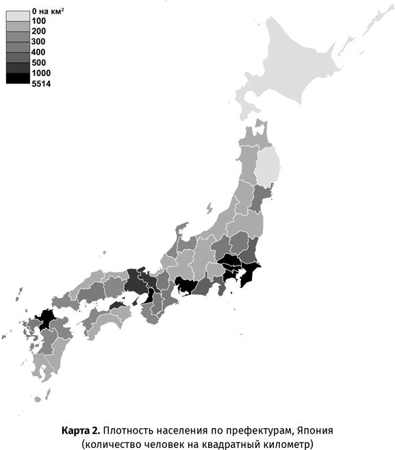 [Закрыть]. Не более четверти территории Японии считается пригодной для жизни, поэтому поселения компактно расположены вдоль берегов Тихого океана, Японского моря и Внутреннего моря, в долинах рек, на редких равнинах, особенно на равнине Канто на северо-восточном Хонсю, где находится Токио, и на равнине Кинай в Центральной Японии, где расположены города Киото, Нара и Осака. В настоящий момент более трех четвертей японцев живут в густонаселенных городах на этих территориях, тогда как сельские регионы населены гораздо меньше. До появления современной транспортной системы перемещение по горам было затруднено, вследствие чего диалекты, жизненный уклад, производимая продукция и животный мир весьма различаются по регионам.