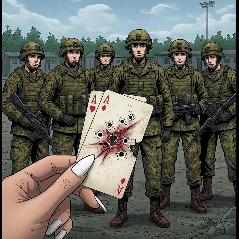 Вокруг ринга собрались зеваки, причем не только из моего взвода. Все мои бойцы вдруг резко позабыли о том, что находятся в армии не по своей воле. Все они резко заинтересовались происходящим, и мне это было даже приятно. Я подошел в красный угол и достал из кармана кителя колоду. Выбрав двух валетов, я показал их всем и сказал: