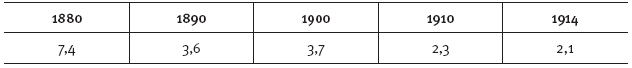 Таблица 7. Суммарное водоизмещение английского и германского ВМФ (1880–1914 гг.)