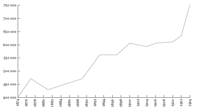 Рисунок 1. Численность германской армии мирного времени (1874–1914 гг.)