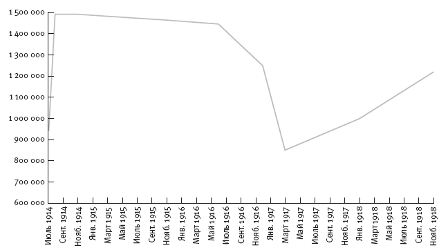 На первый взгляд, утверждения Крауса имеют определенный смысл. Есть все основания полагать, что война, действительно, увеличила продажи газет. Тираж Daily Mail, составлявший до войны 946 000 экземпляров, стал в первые недели августа почти полуторамиллионным и до июня 1916 года оставался на уровне 1,4 миллиона. Даже в конце войны он не снизился до довоенных цифр (см. рис. 11).