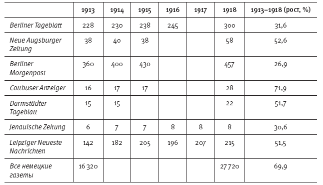 Таблица 20. Тираж некоторых немецких газет (тыс. экз.), 1913–1918 гг.