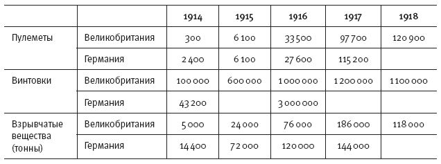 Таблица 26. Производство вооружений в Англии и Германии: некоторые показатели